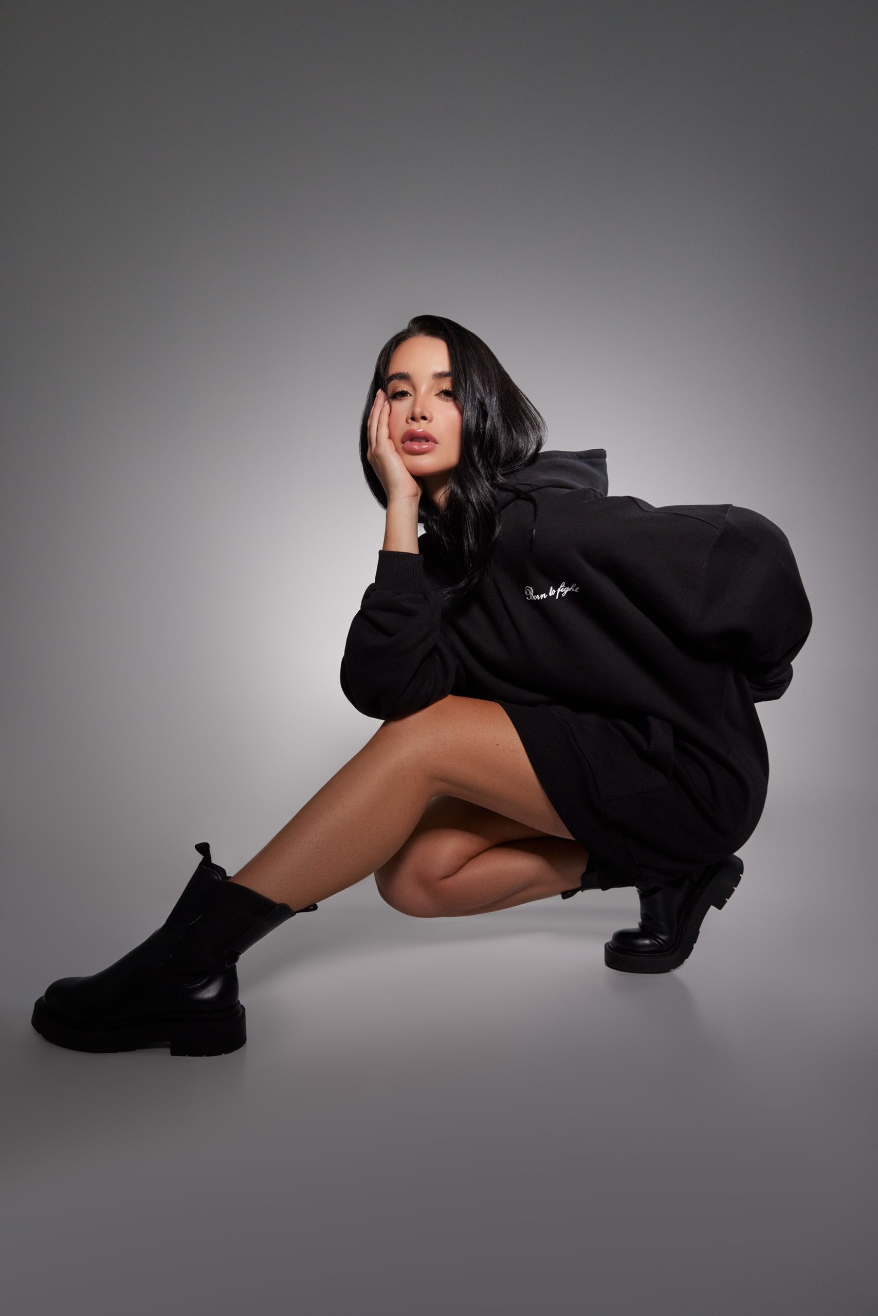 Buso negro oversize confeccionado en 100% algodón premium de 375 gramos, ideal para quienes buscan comodidad, resistencia y un estilo moderno. Su diseño negro sólido resalta gracias a un estampado en alta densidad ubicado tanto en el frente como en la espalda, aportando textura y un acabado llamativo de gran calidad.