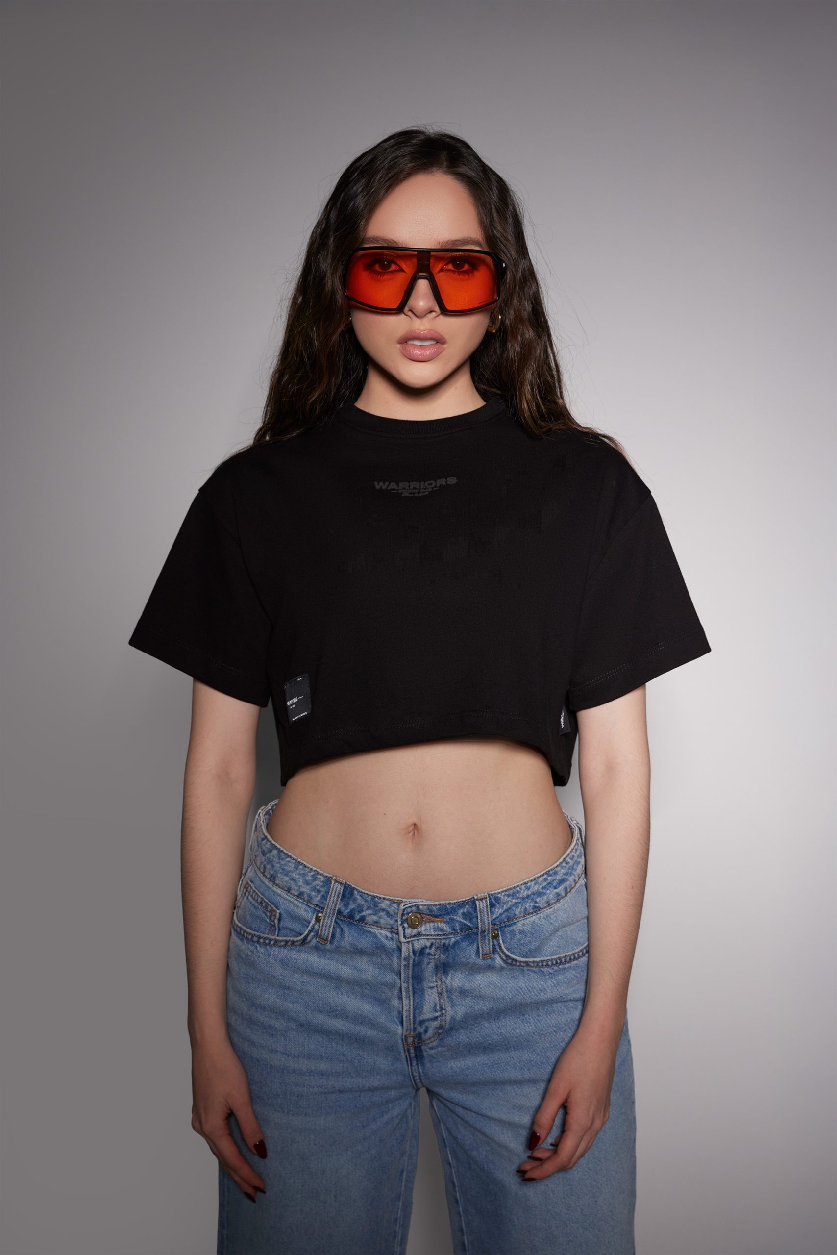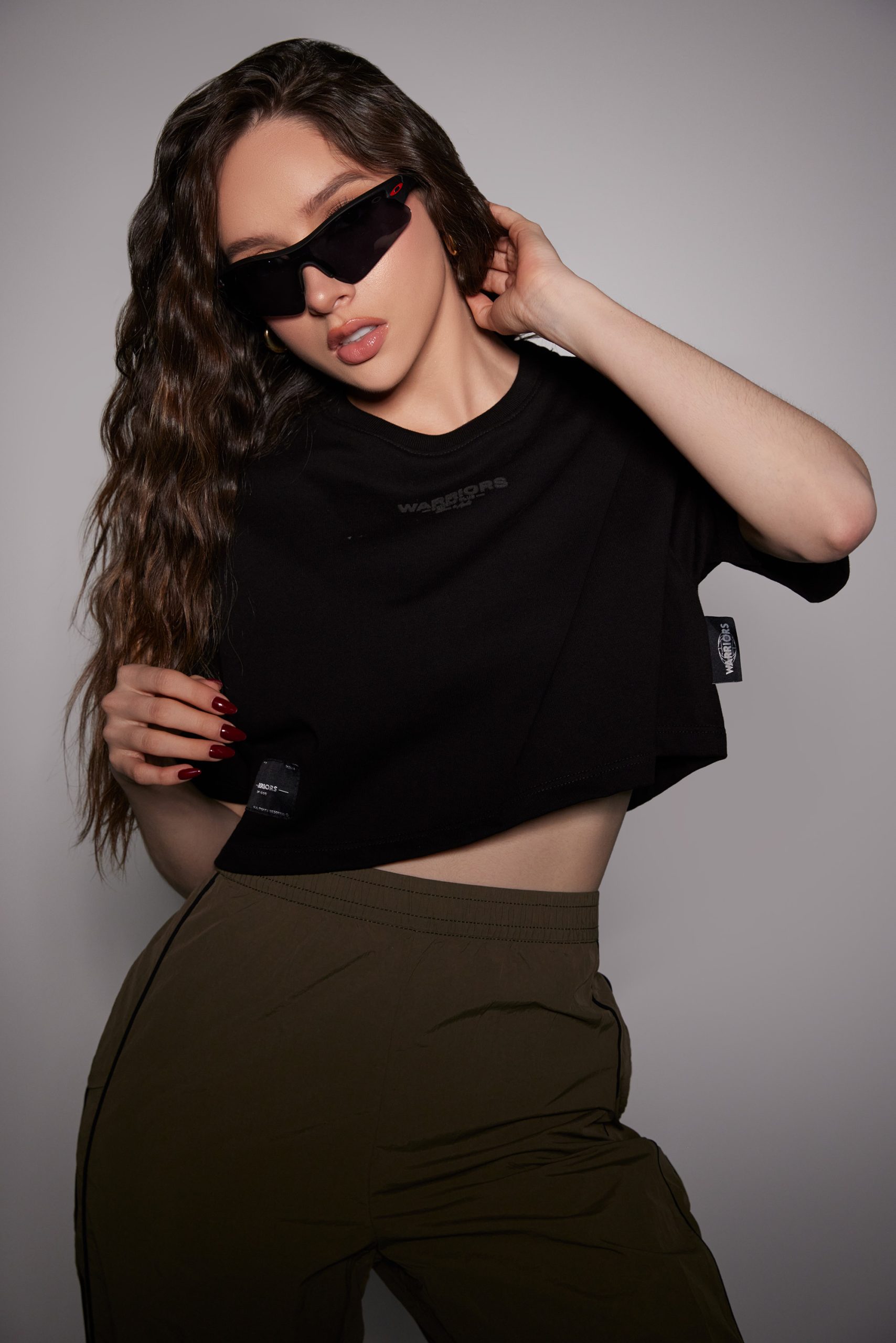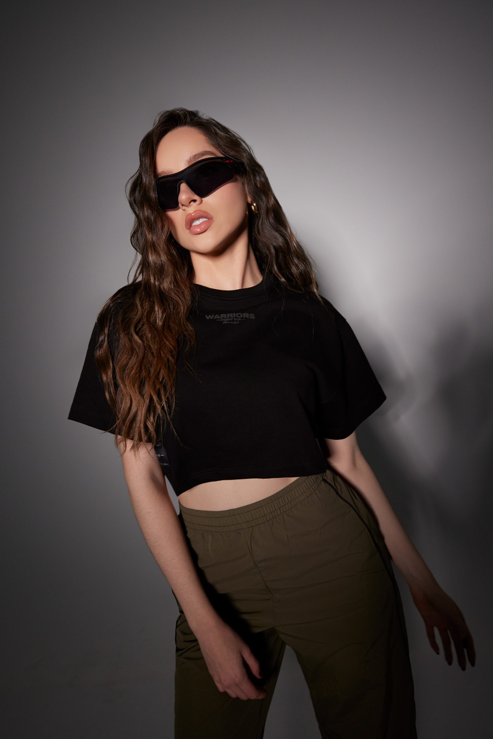 Crop top urbano negro para dama confeccionado en algodón de alto gramaje (250 g/m²) que garantiza una prenda resistente, de tacto suave y cómoda al usar. Su diseño corto y moderno resalta la silueta de manera sutil, convirtiéndose en una pieza versátil ideal para combinar con jeans, joggers o shorts.
