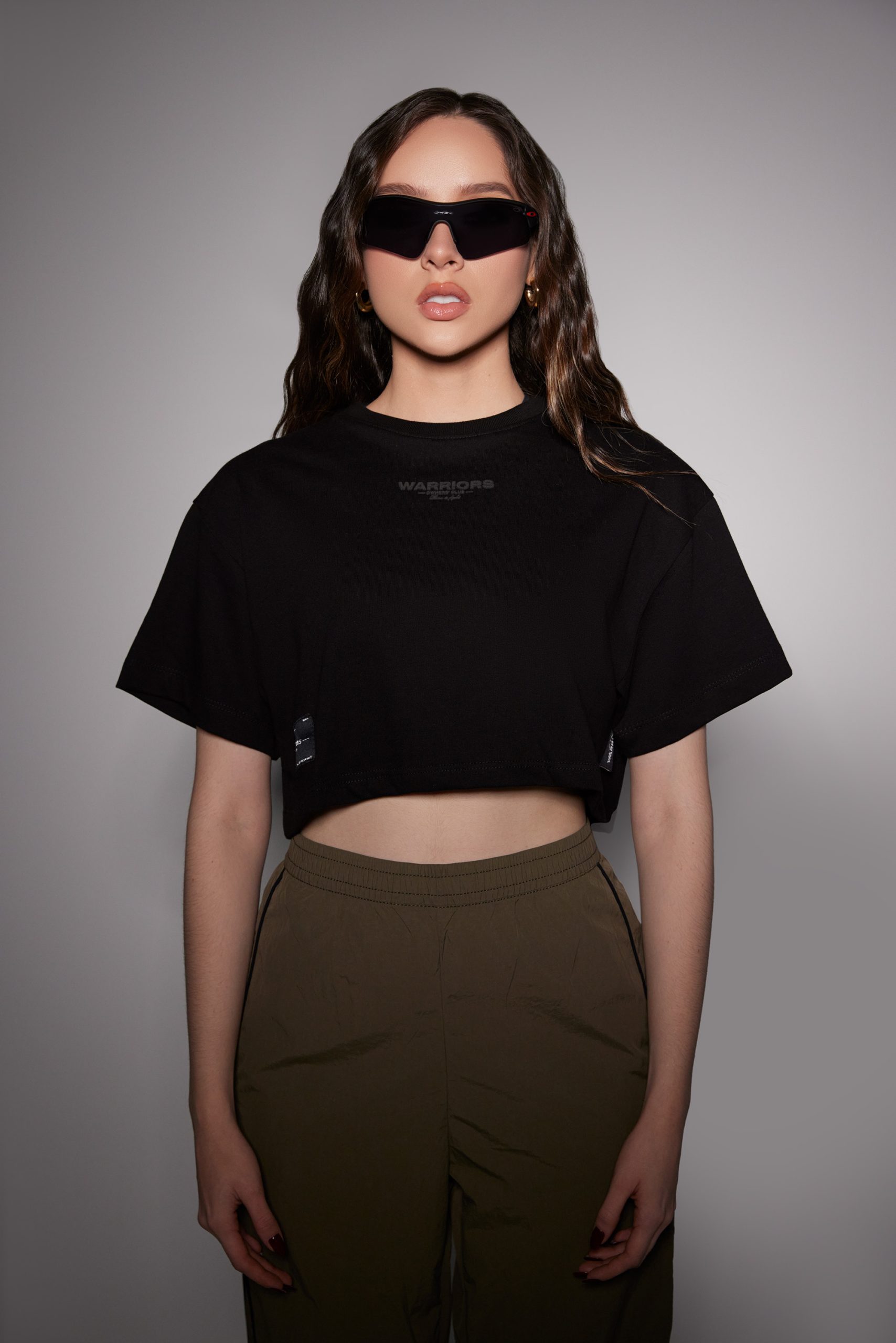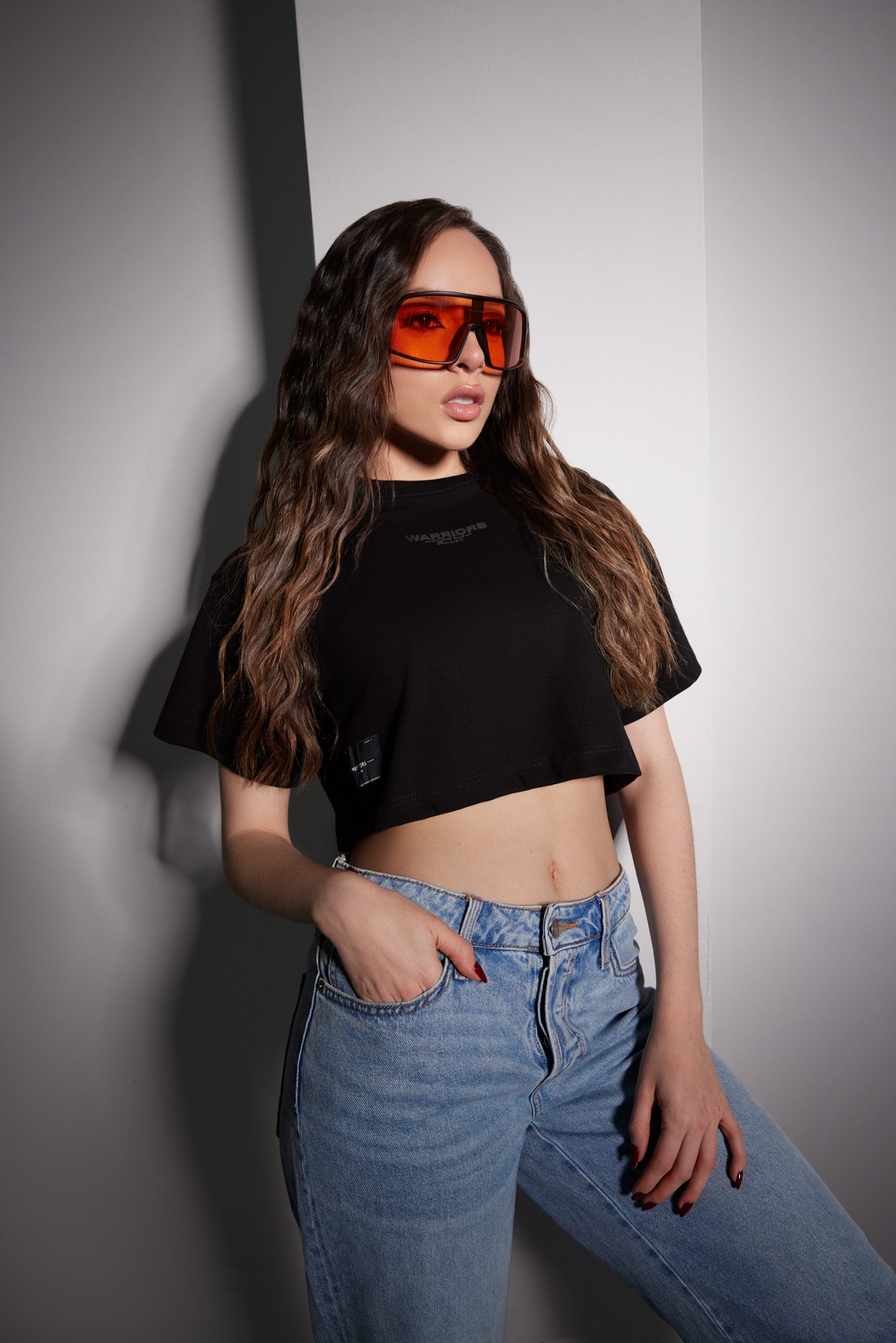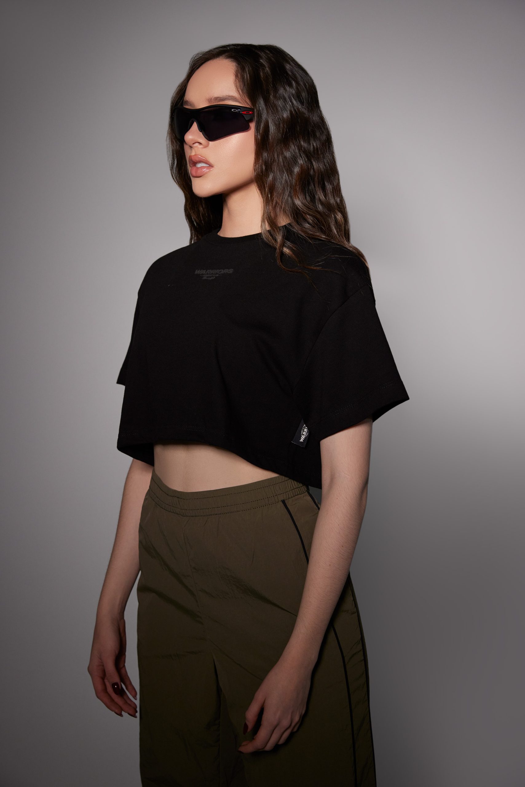 Crop top urbano negro para dama confeccionado en algodón de alto gramaje (250 g/m²) que garantiza una prenda resistente, de tacto suave y cómoda al usar. Su diseño corto y moderno resalta la silueta de manera sutil, convirtiéndose en una pieza versátil ideal para combinar con jeans, joggers o shorts.